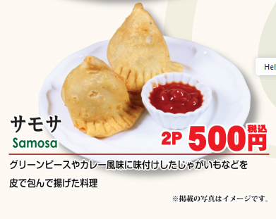 グリーンピースやカレニー風味に味付けしたじゃがいもなごどを 皮で包んで揚げた料理